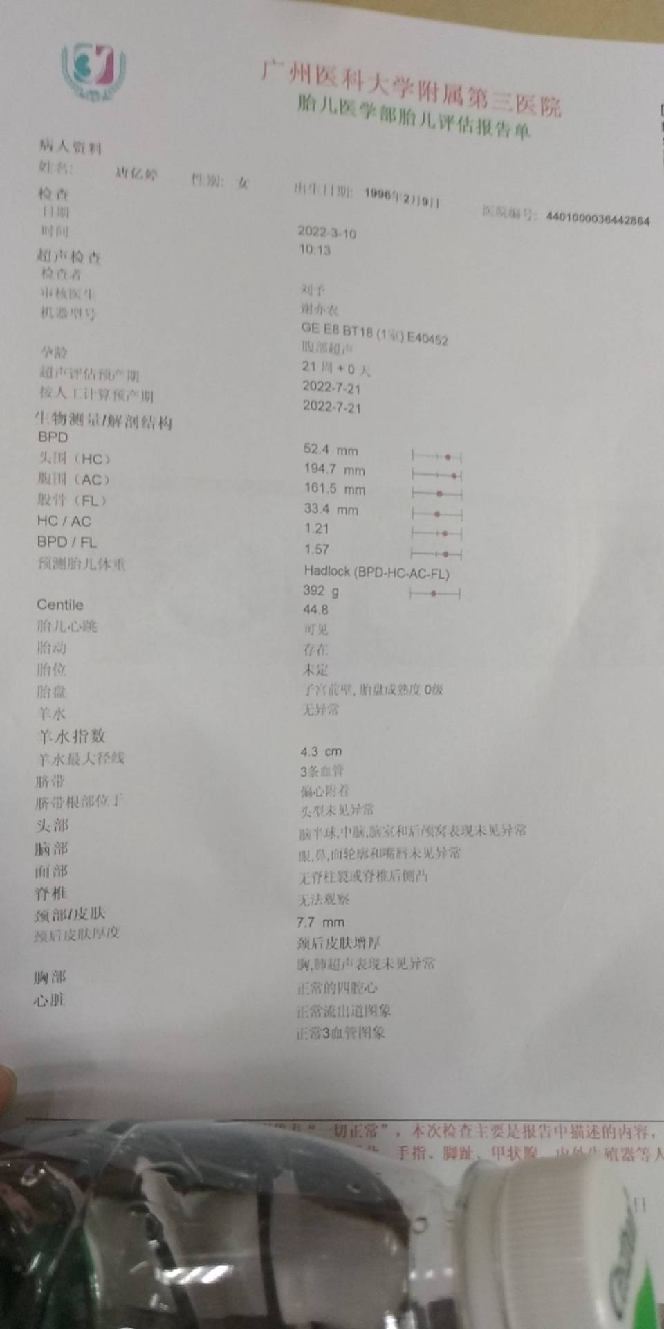 今天是怀孕16周去做了胎心监测还有做了一个B