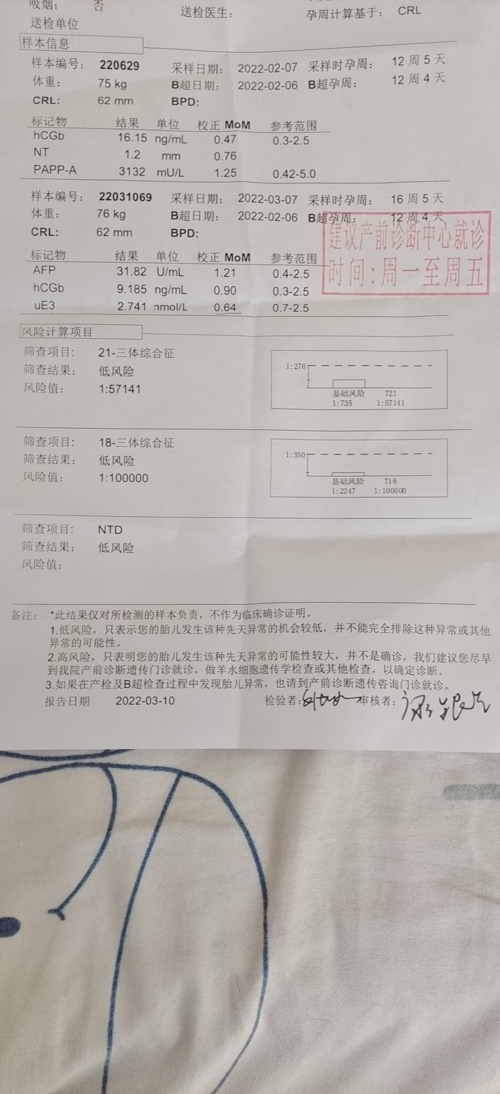 这个数据正常吗,uE3数值偏低(本次数值是0.64),正常参考值是0.7-2.5,还有这个中唐检查是低风险吗?