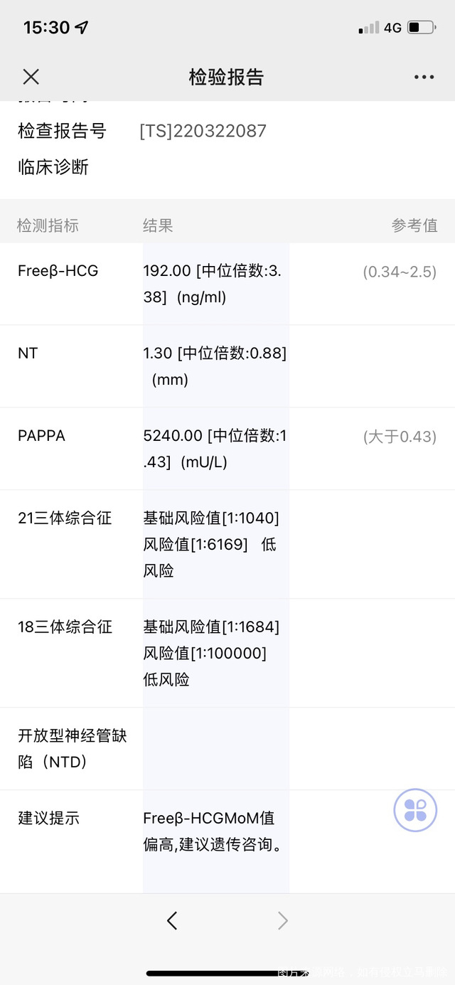 孕12周+早期唐筛请问这个报告正常麽第一个值
