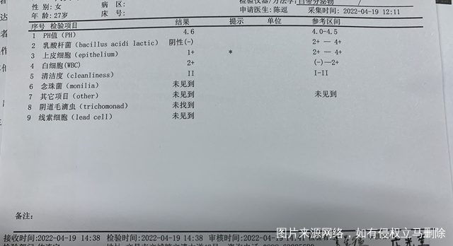 乳酸杆菌是阴性,上皮细胞1+,帮忙看看结果