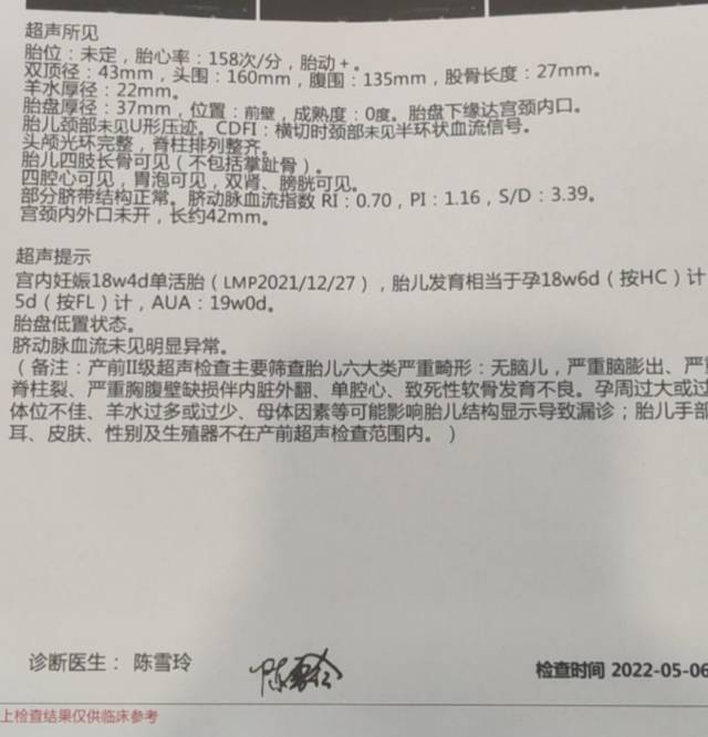 各位医生帮忙看下b超的数据胎儿是是否正常羊水