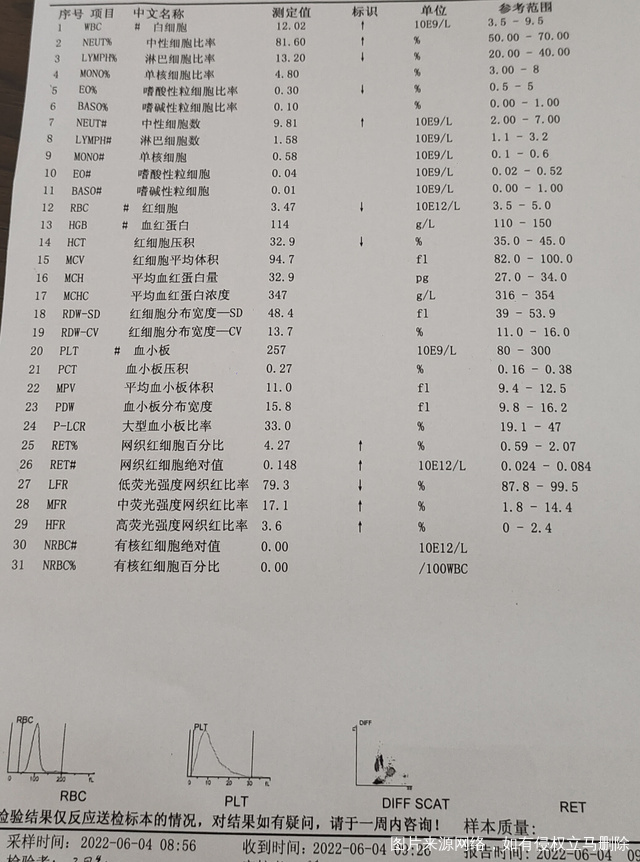 孕十三周喉咙痛发炎!血常规白细胞11,中性细胞77,医生建议住院输头孢呋辛钠,五天后出院复查血常规反而还高了白细胞12!