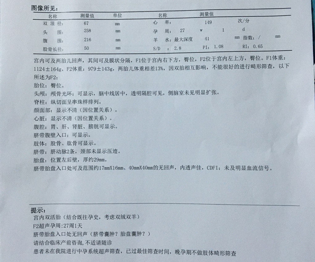 请各位医生帮忙看下B超结果吧孕27+6周做的