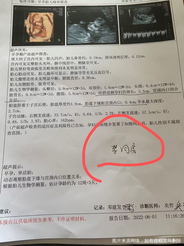 今天是怀孕16周去做了胎心监测还有做了一个B