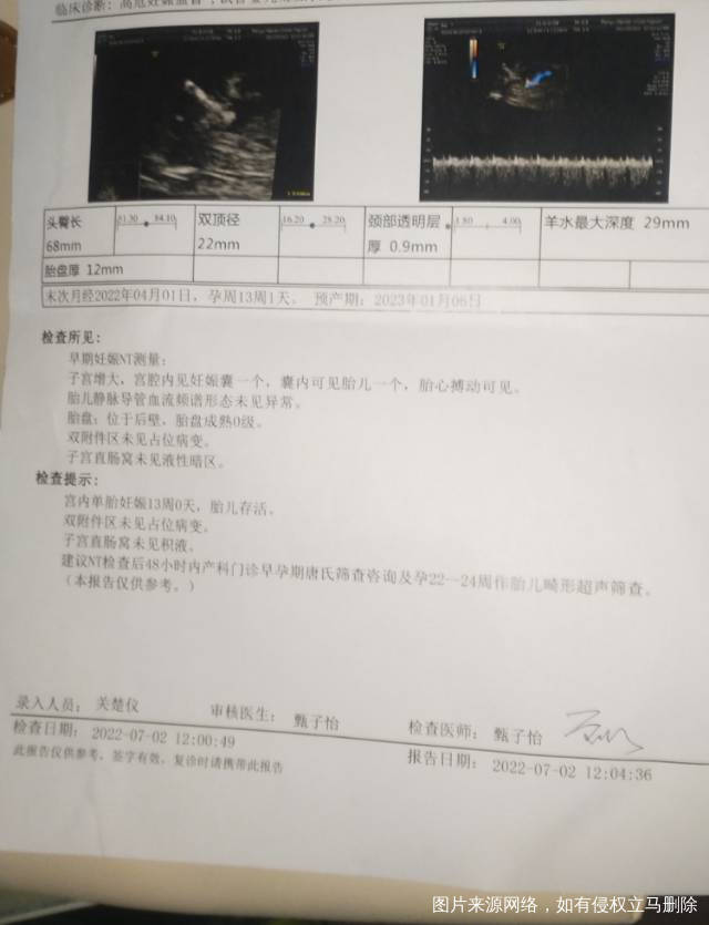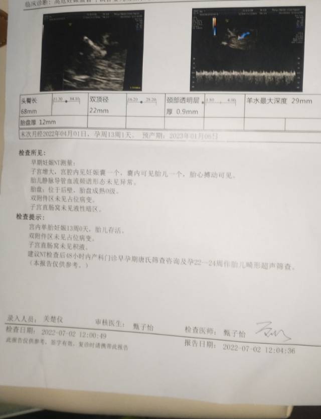 4月19日,孕周12+5天,今天做了NT,只挂到礼拜一的号。想麻烦医生帮忙先看看,结果都正常嘛?