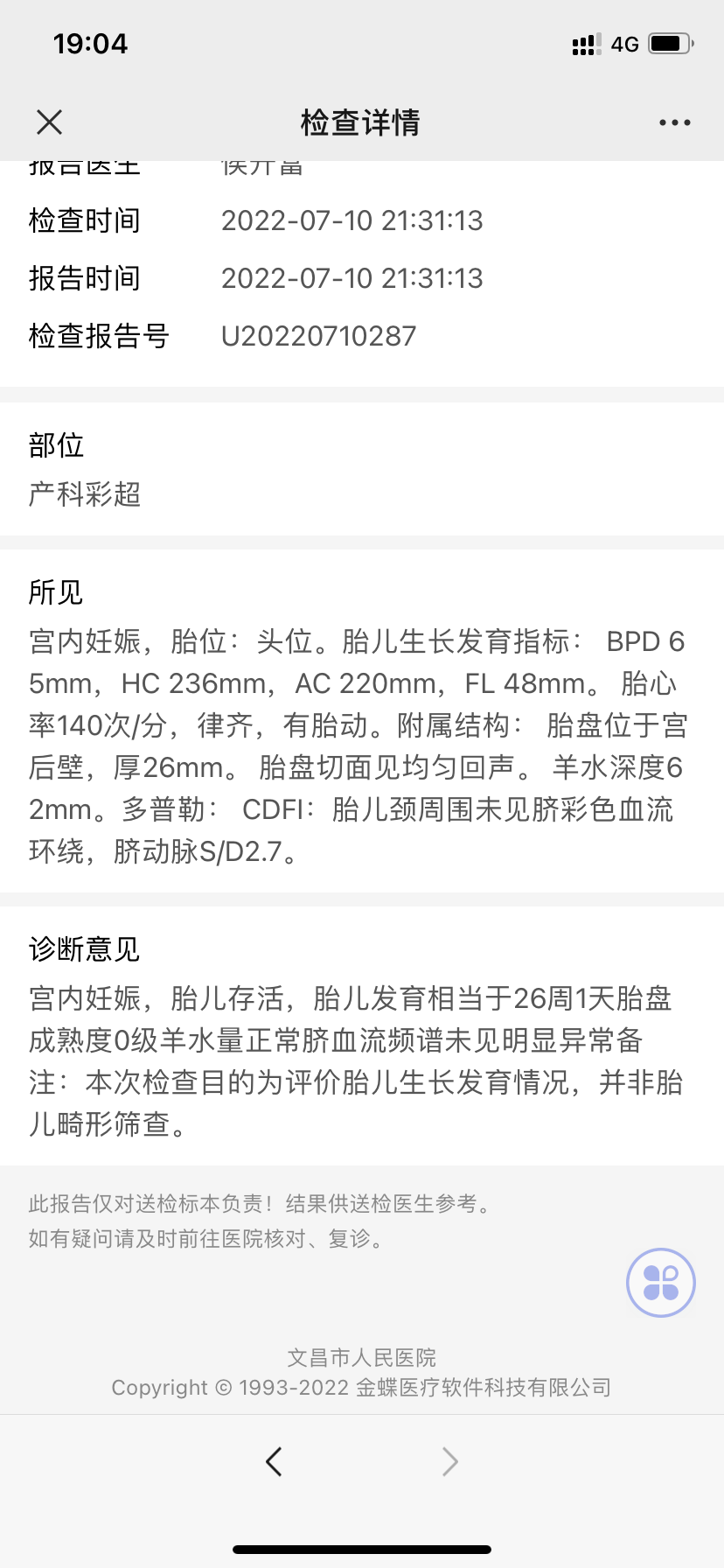 今天是怀孕16周去做了胎心监测还有做了一个B