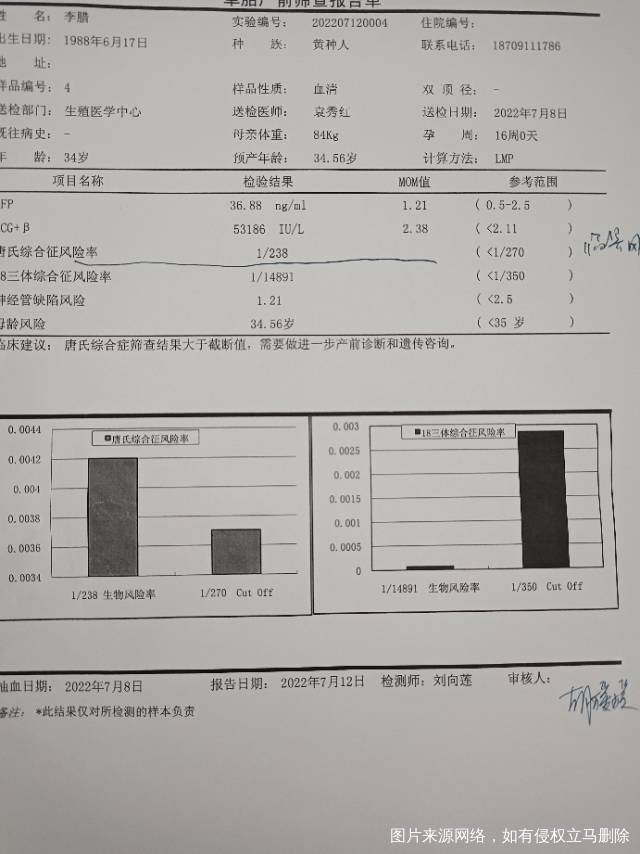 16周做了唐氏盘查,帮忙看看问题严重吗?