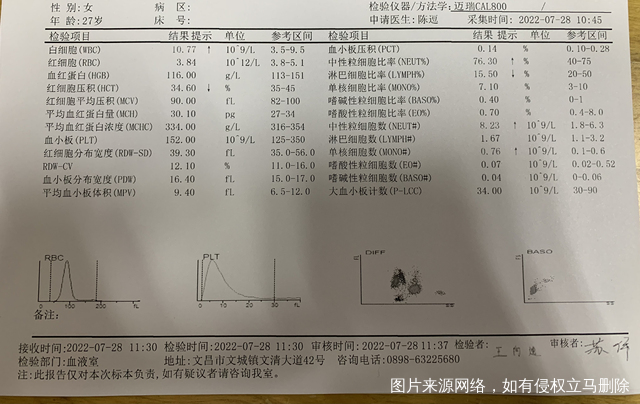 亲,你这个看不太清楚,好象是血常规吧,有没有地贫是要抽血作地贫基因检查才能知道