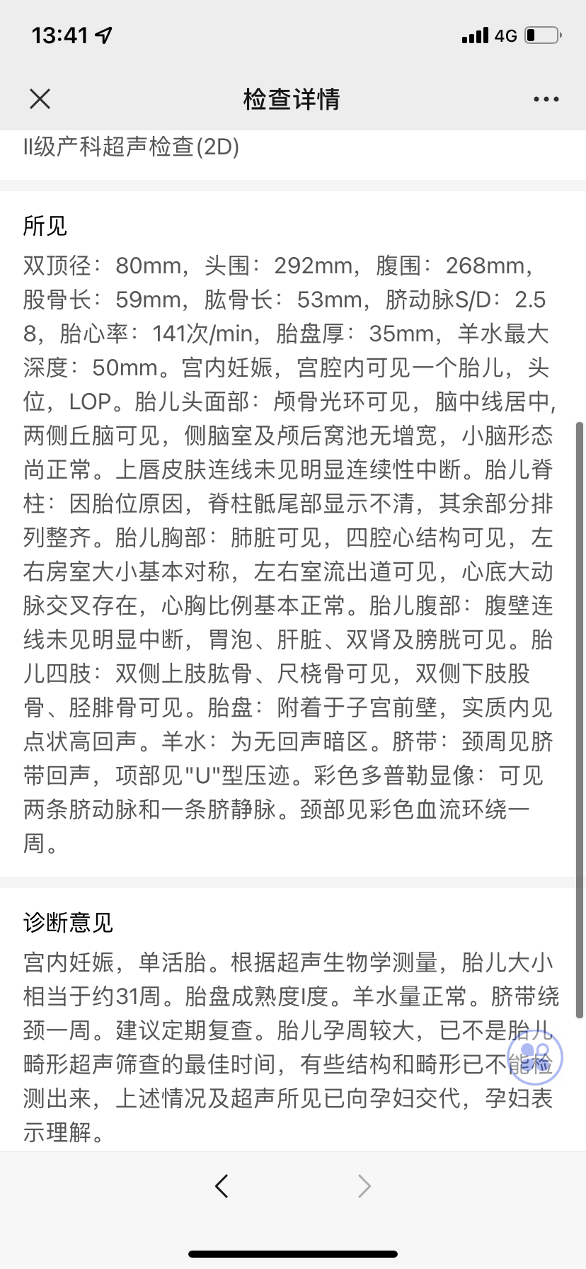 孕期31周今天做二级彩超和白带常规结果如下请
