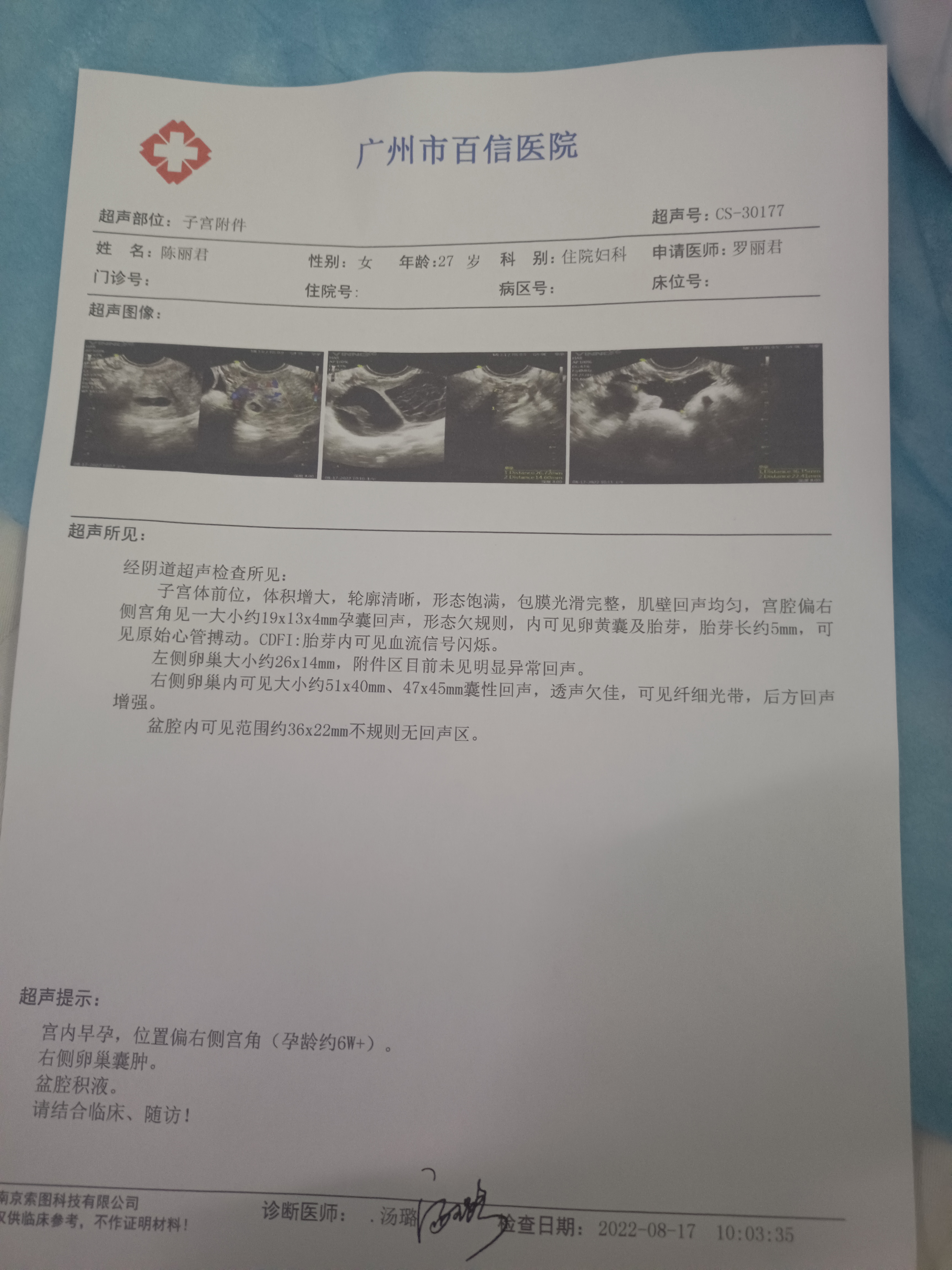 今天是怀孕16周去做了胎心监测还有做了一个B