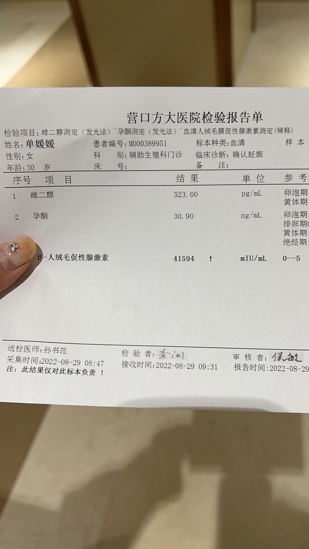从你描述的情况和化验结果看,翻倍还可以,明天不需要再次测试,可以间隔四天到医院复查一下