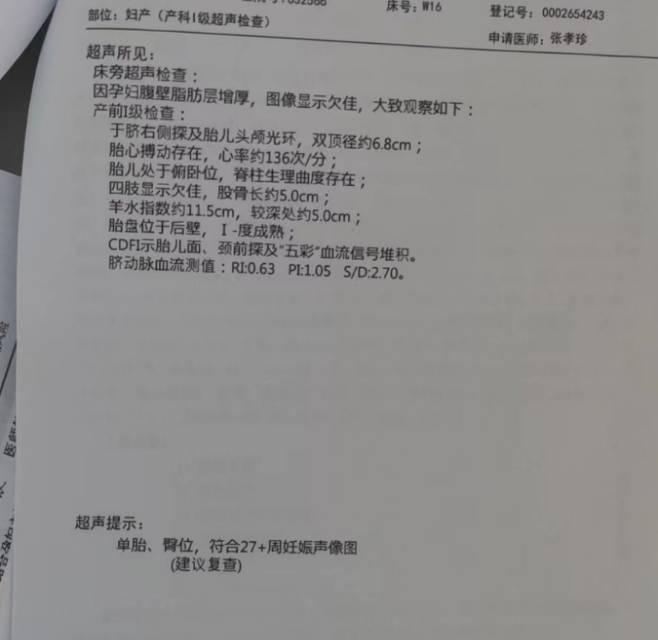今天是怀孕16周去做了胎心监测还有做了一个B
