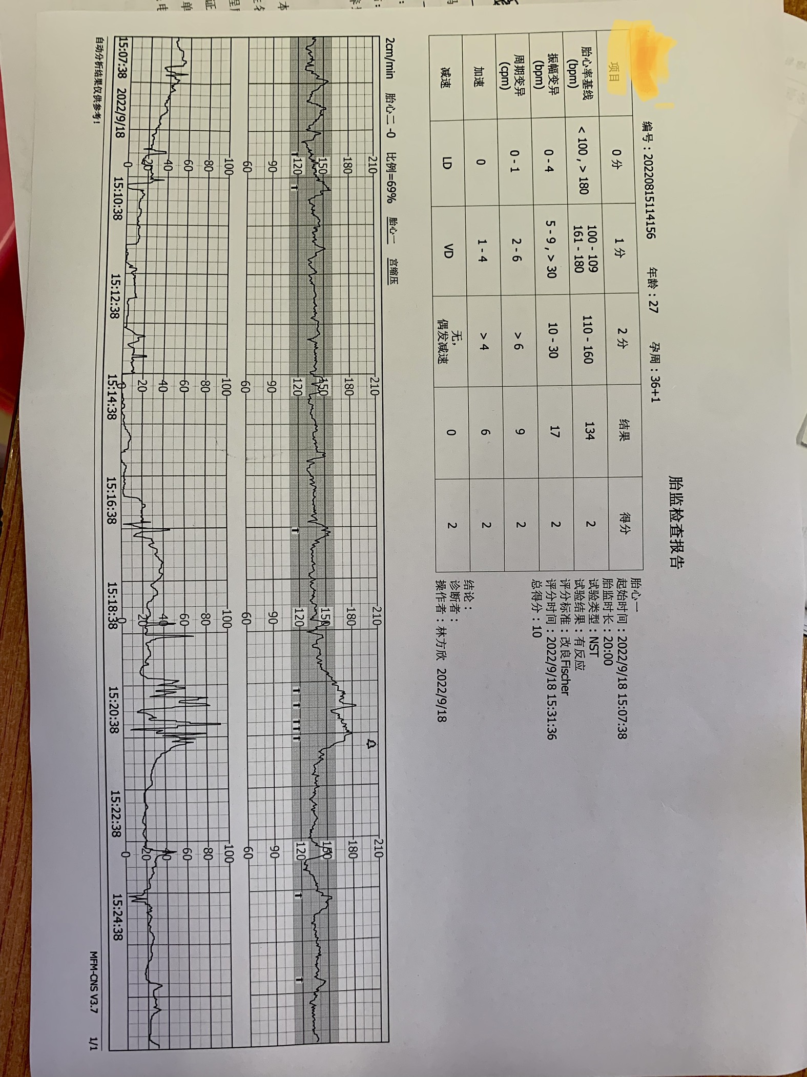 今天是怀孕16周去做了胎心监测还有做了一个B