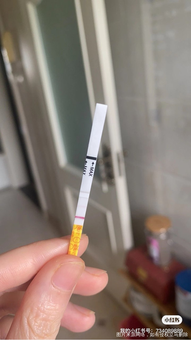 12点测出了红色杠杠,眼睛一动不动等着她变色,快看瞎了~好像怀上了!马上打电话给妈妈和婆婆!