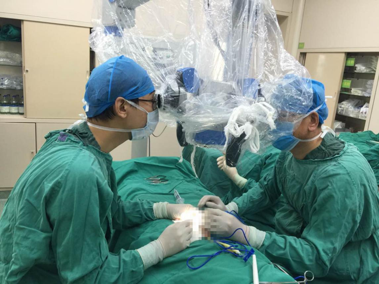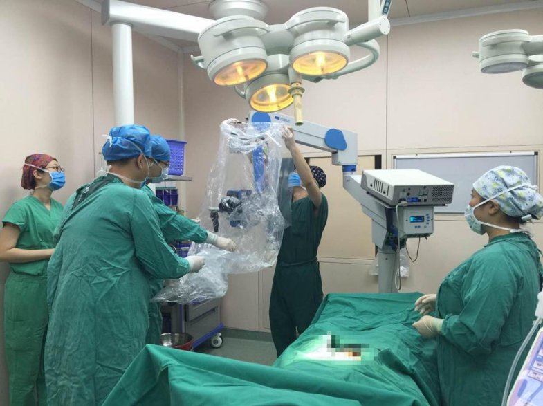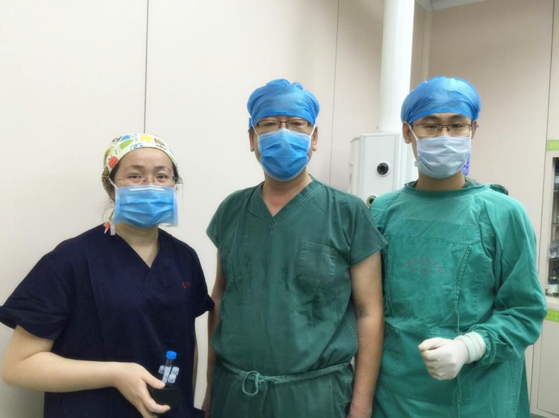 术者:孙文涛教授(中)、于洋医生(右)、王瑞雪博士(左)。